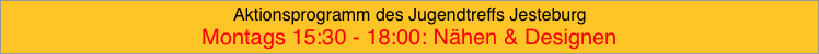 Montags (außer Ferien) von 16:00-18:30 Uhr treffen sich alle Näh-Interessierten zum Nähen & Designen. Hier kannst du an der Nähmaschine nähen und kleine Projekte selbst designen oder pimpen.